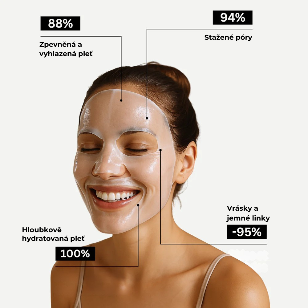 Náš hlavní aktivní složka — 40 gramů v jedné masce. Jeho jedinečná struktura mu umožňuje pronikat hlouběji do pokožky, aby ji vyplnil, zpevnil a viditelně vypnul.